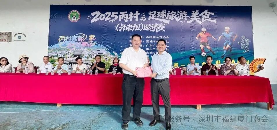 接着商会一行先后体验丙村足球文化,在三堡运动场观看足球邀请赛,感受“足球之乡”的活力;并由丙村镇党委书记古勇科向我会创会会长、理事长纪添祺(秉岐)颁发丙村镇足球协会荣誉会长证书。