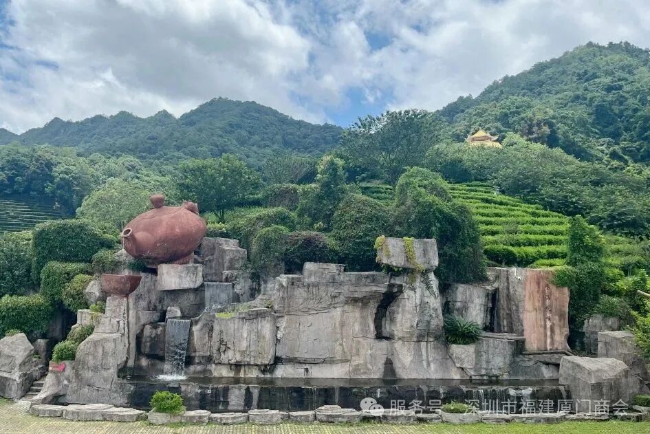 座谈会后在领导们的陪同下,实地走访阴那村茶海观峰标准化茶产业园,深入感受“茶产业+文旅”融合模式。一行人在雁南飞茶文化园聚餐伴文艺表演,沉浸式感受客家文化。