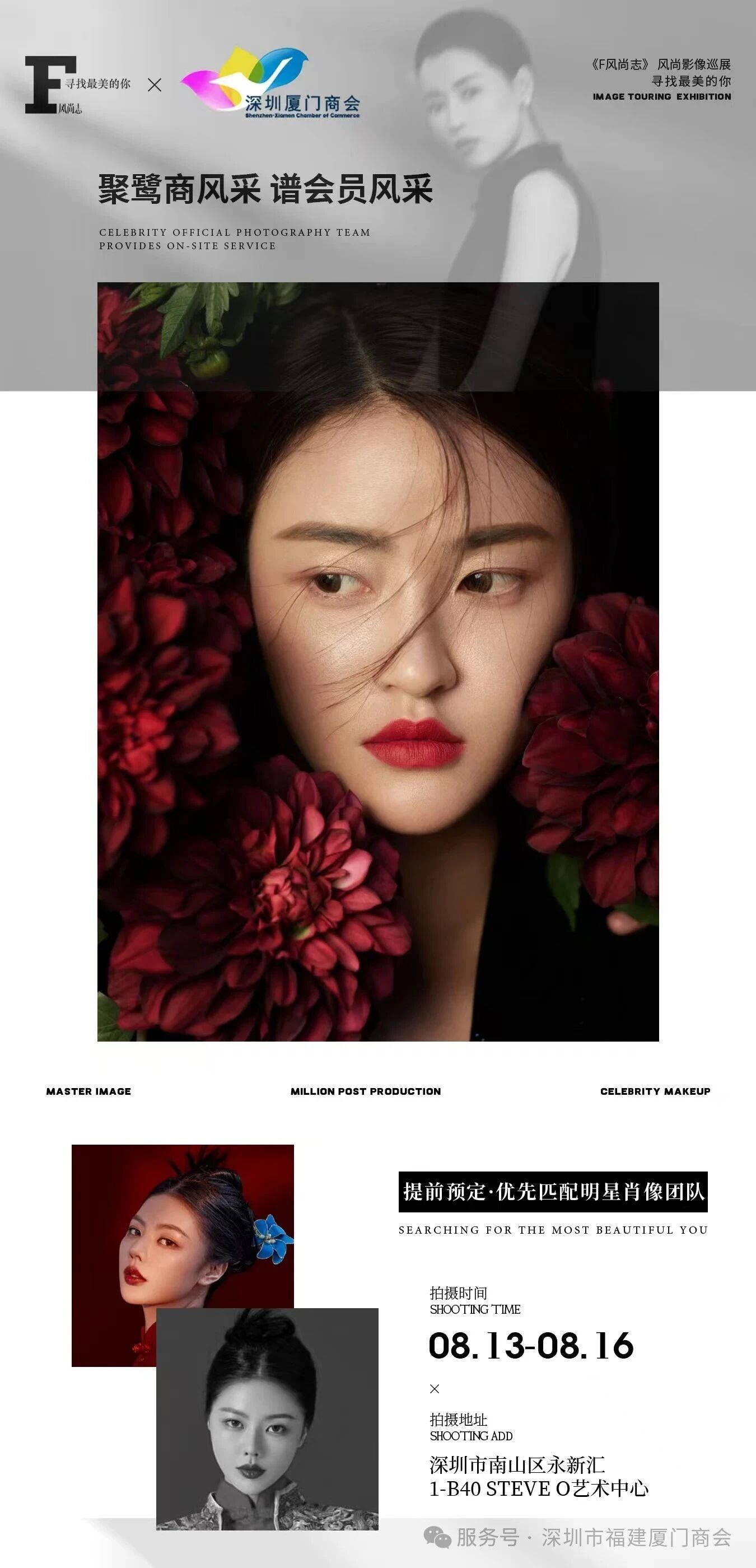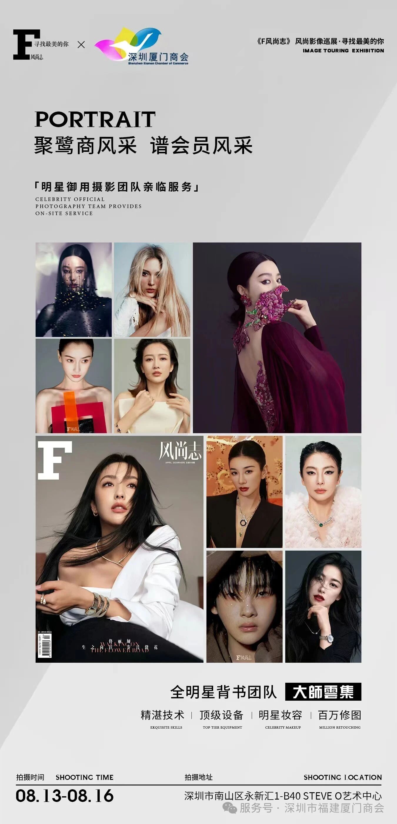 值此我会创刊号会刊筹备&第一届理(监)事就职典礼(11月29日)即将启幕之际,为凝聚闽商力量、展现会员风采,商会特邀中国唯一时尚杂志全国巡展的北京【F风尚志】明星肖像团队,为我会会员提供限量名额的高级肖像拍摄定制体验。
