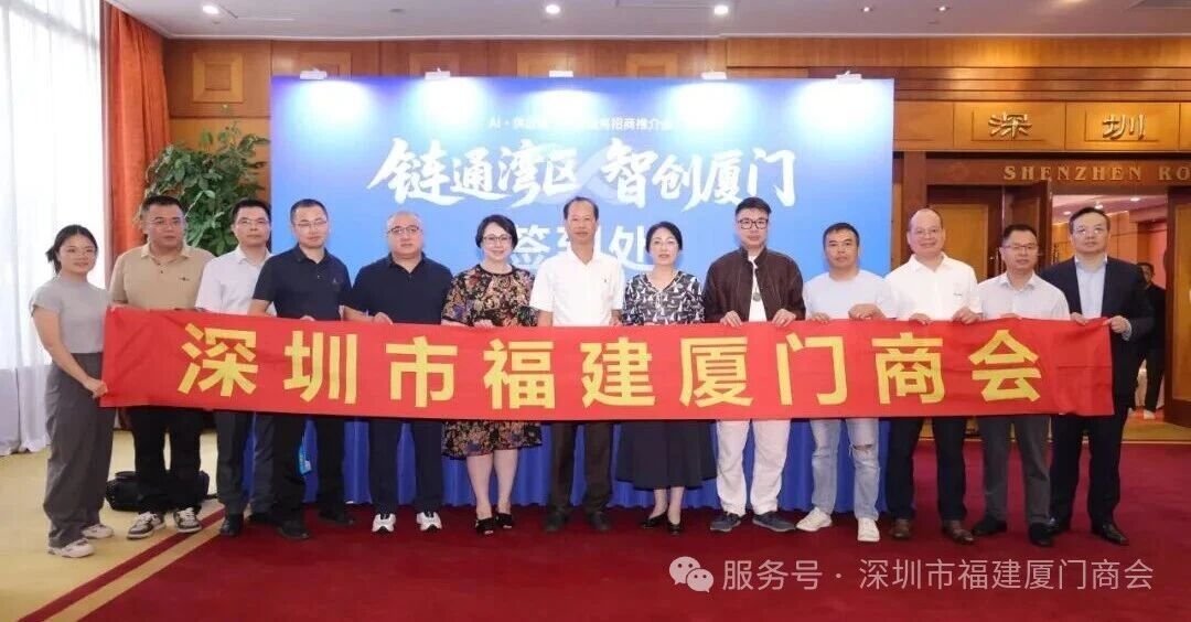 2025年8月26日下午,“链通湾区·智创厦门——AI·供应链·数字服务招商推介会”在深圳隆重举行。我会创会会长兼会长苏进展,创会会长兼监事长陈志忠,永远名誉会长李永毅,执行会长兼秘书长黄丽红,常务副会长陈小彬,名誉会长王青,副会长林刚锋等20余位商会领导代表出席本次推介会。