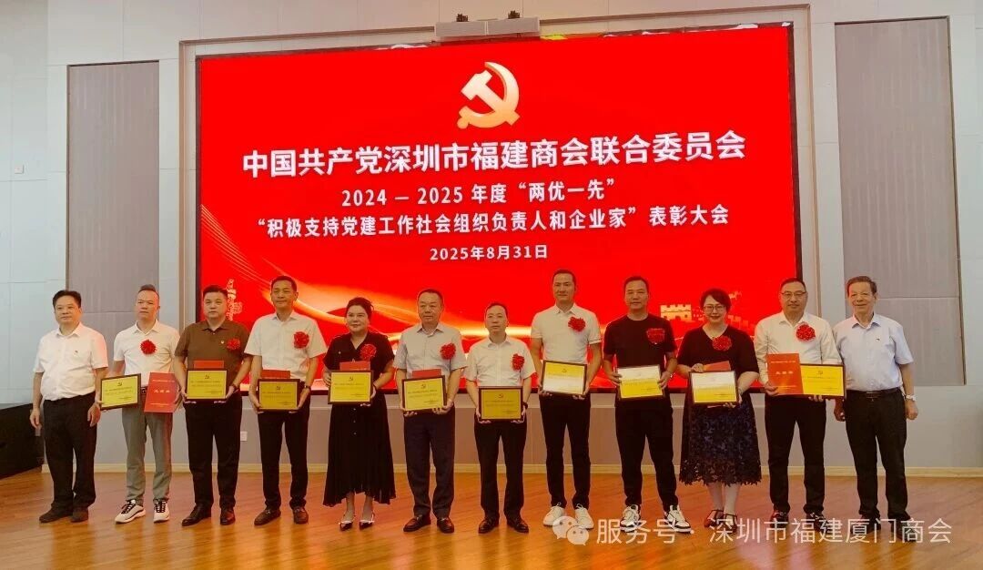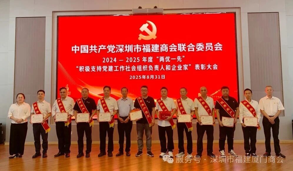 在中国共产党成立104周年之际,中共深圳市福建商会联合委员会,于2025年8月31日上午召开2024至2025年度“两优一先”和“积极支持党建工作社会组织负责人和企业家”表彰大会,对在党建工作中表现突出的先进集体和个人进行表彰。