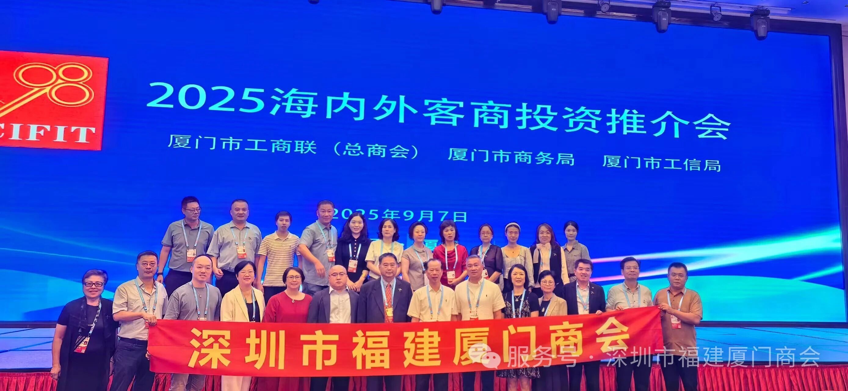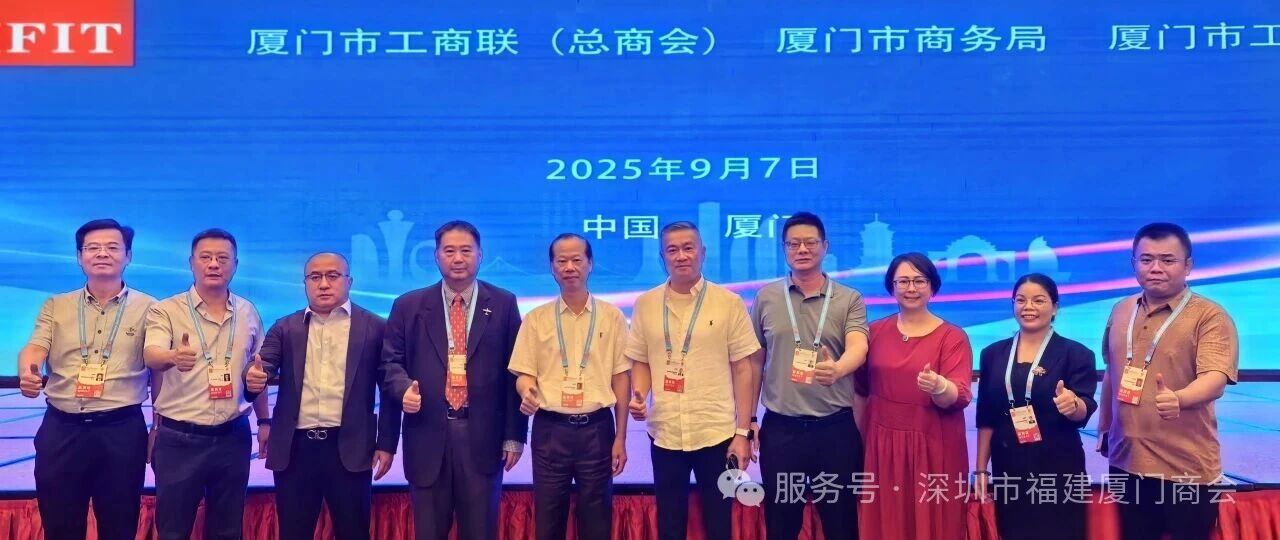 2025年9月7日下午,由厦门市工商联(总商会)、厦门市商务局、厦门市工信局共同举办的2025海内外客商投资推介会在厦门市天元酒店盛大举行。我会创会会长、会长苏进展,创会会长、理事长纪添祺(秉岐),创会会长、监事长陈志忠,永远名誉会长李永毅,执行会长、秘书长黄丽红,常务副会长黄向荣、朱伍松、林志坚,名誉会长、副会长王青,副会长苏文铿等一行24位商会领导出席本次推介会。
