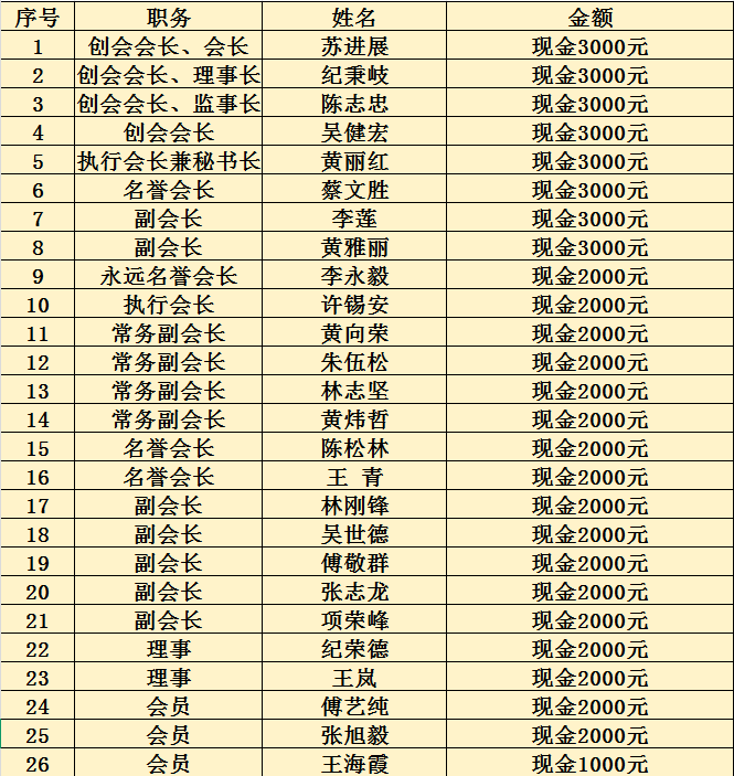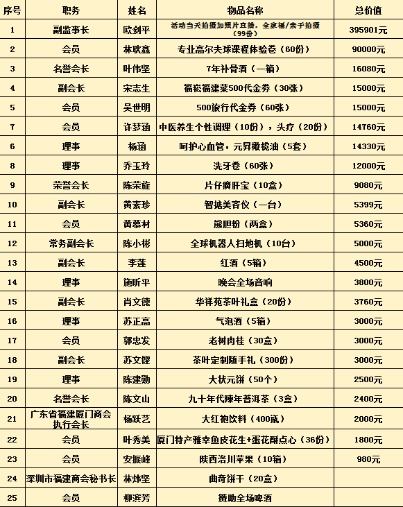 本次活动赞助芳名榜
