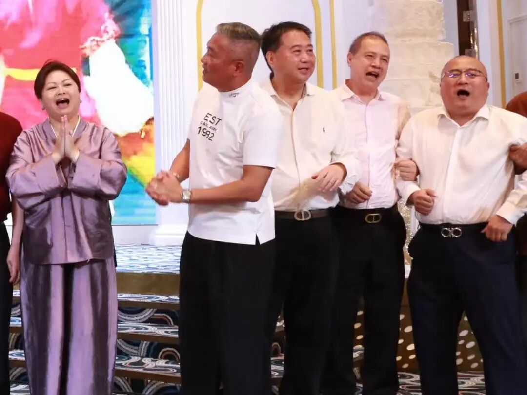 当商会全体成员齐唱《爱拼才会赢》时,熟悉的旋律引发全场大合唱,将活动推向最高潮。