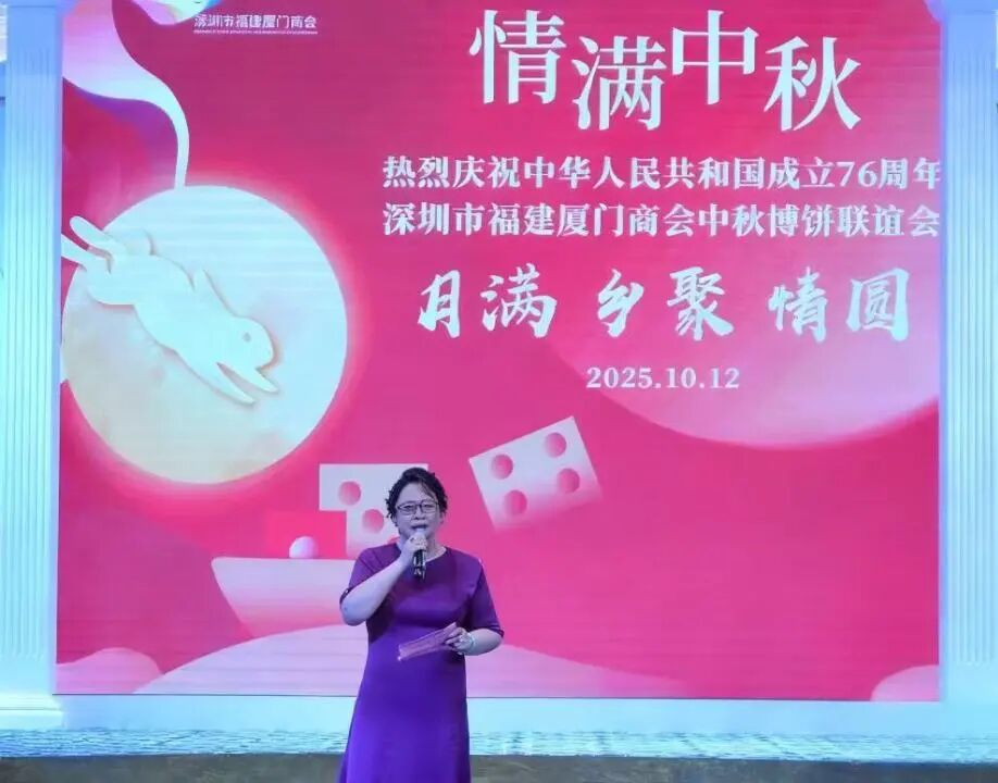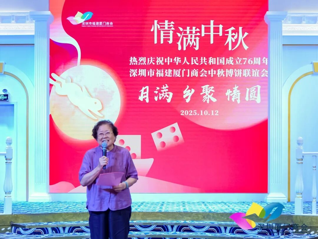 执行会长兼秘书长黄丽红女士致开场词,向全体成员致以双节的诚挚祝福,她表示,本次联谊会既是传承闽南博饼文化、增进会员情谊的团圆之约,更是商会成员共庆祖国76周年华诞、凝聚奋进力量的同心之聚,希望大家在活动中畅叙乡情、共享欢乐。