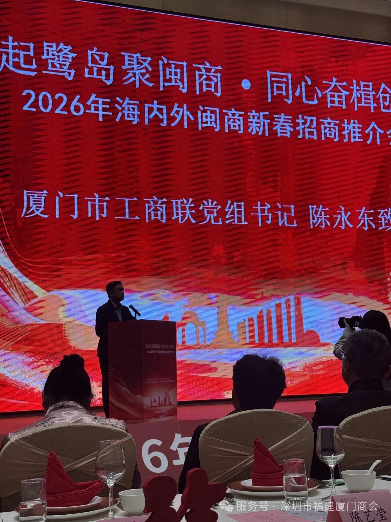 推介会上,厦门市委统战部副部长、市工商联党组书记陈永东全面展示厦门高质量发展“成绩单”:2025年全市GDP同比增长5.7%,12个百亿级项目落地见效,200多亿元惠企政策精准落地,营商环境持续优化,法治护企体系不断完善。陈永东指出,2026年是“十五五”开局关键之年,厦门将以“3+1”城市发展转型升级总体框架为引领,构建“4+4+6”现代化产业体系,做强电子信息等四大支柱产业,培育生物医药与健康等四大战略性新兴产业,前瞻布局海洋经济等六大未来产业,以市场化、法治化、国际化一流营商环境为企业发展保驾护航。他向海内外闽商发出诚挚邀约,号召大家传承“爱拼才会赢”闽商精神,当好厦门发展的“宣传员”“联络员”“服务员”,引项目、带技术、聚人才回乡兴业,共享城市发展红利。