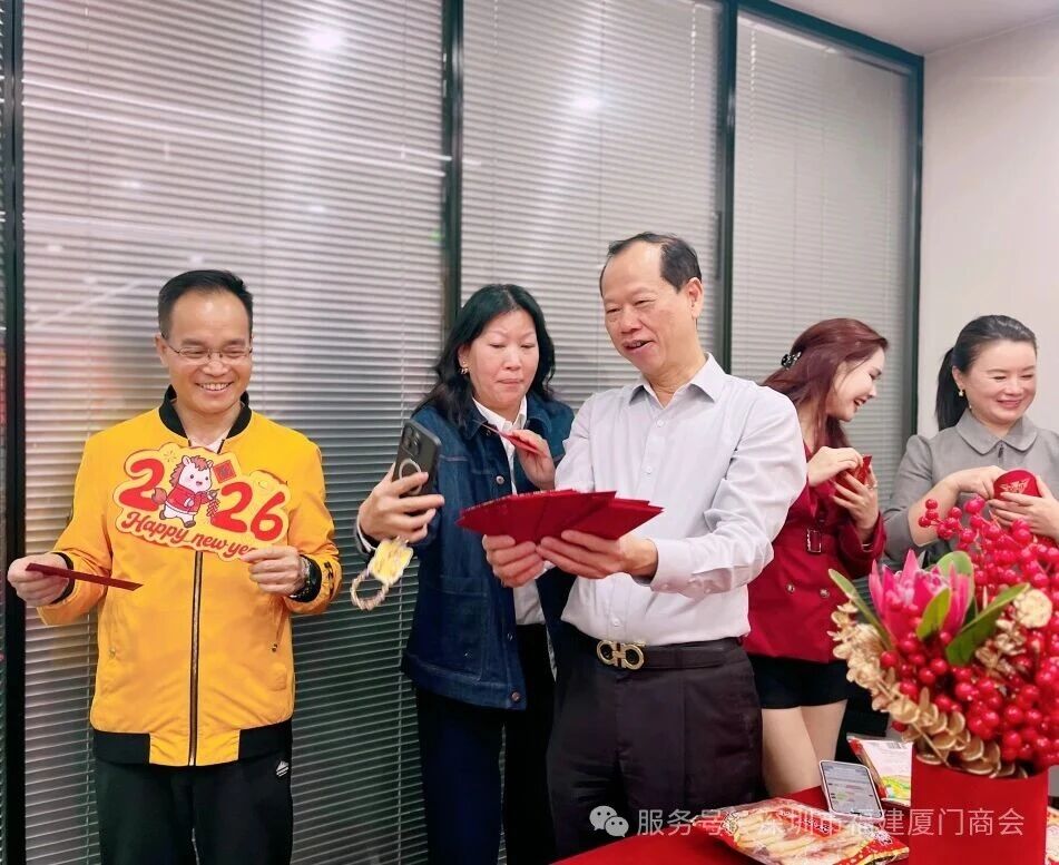 2月26日,深圳市福建厦门商会2026年新春团拜会温情举办。我会创会会长、会长苏进展,创会会长、理事长纪添祺(秉岐),创会会长、监事长陈志忠,执行会长兼秘书长黄丽红,执行会长许锡安,常务副会长林志坚、朱伍松、黄向荣,名誉会长蔡文胜、叶伟坚、庄灿阳、洪伟艺,顾问胡添荣,副会长林刚锋、庄永健、吴春芳、石雯文等领导与会员成员及家属们欢聚一堂,品茗叙情、共贺新春,在浓浓乡情中喜迎丙午马年,共话新岁发展蓝图。